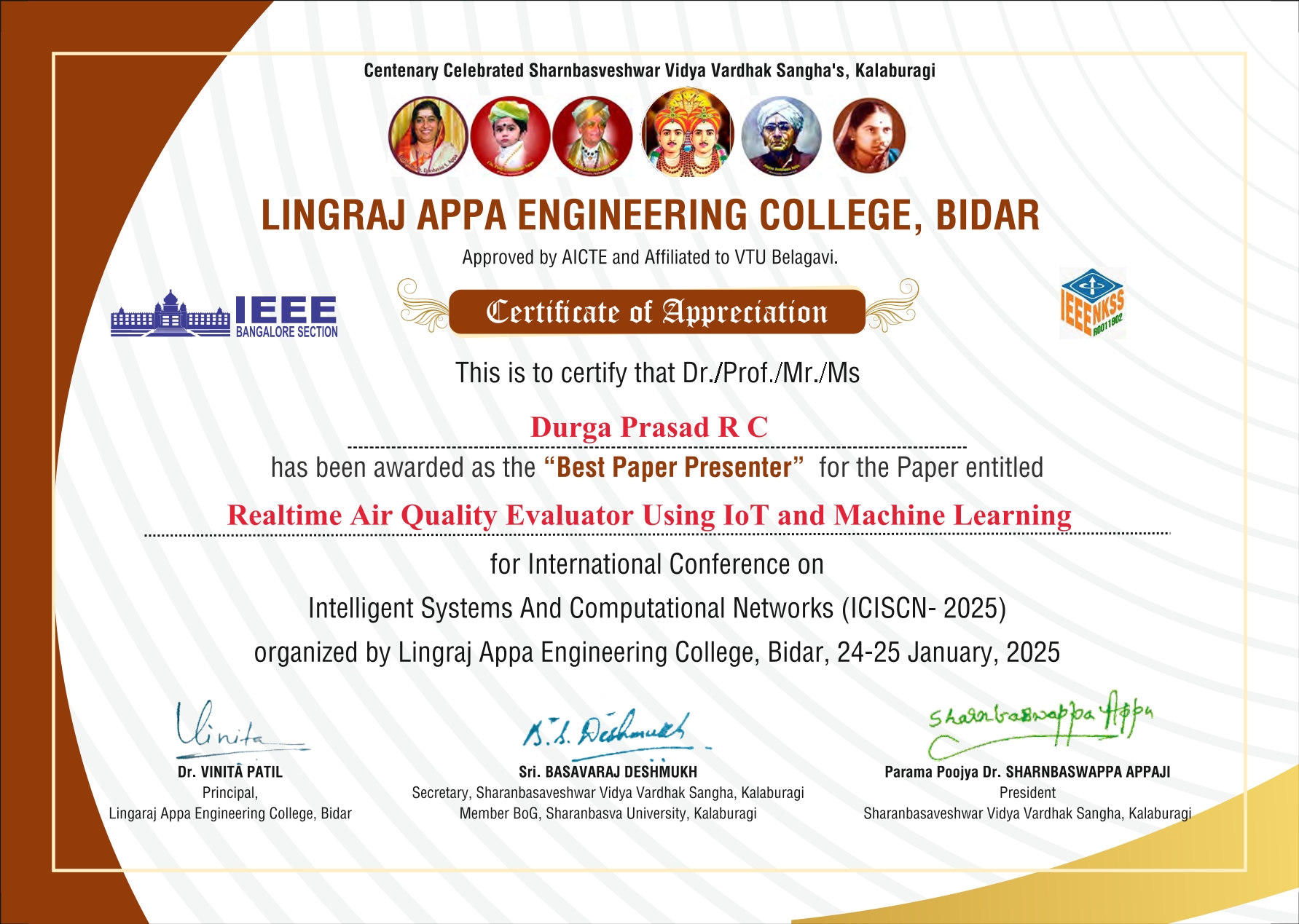Best Paper Presenter in International Conference  on Intelligent System and Computational Networks ICISCN2025
