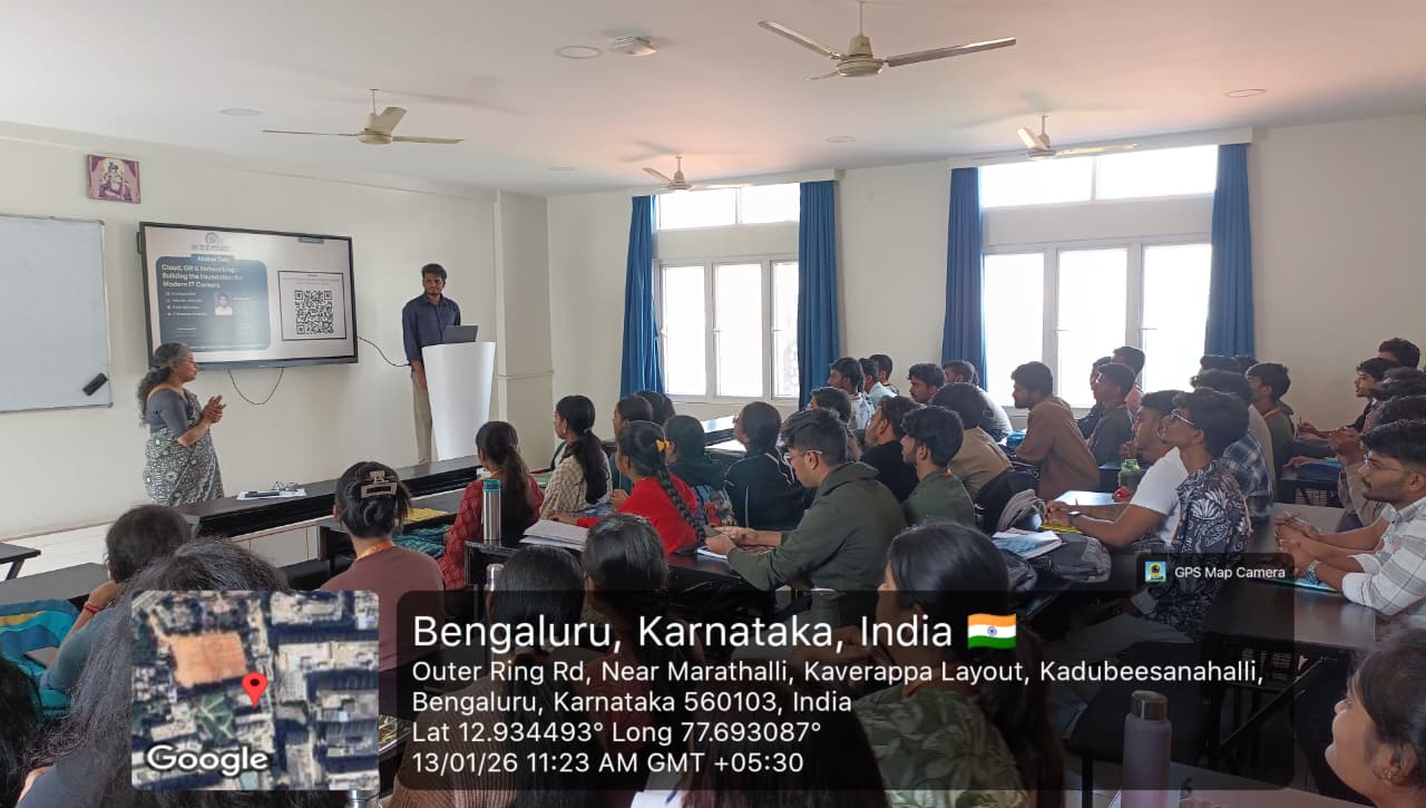 The Department of MCA organised an Alumni Talk titled “Cloud, Git & Networking: Building the Foundation for Modern IT Careers” to introduce students to key concepts in cloud computing, version control, and networking fundamentals on 13 January 2026.
